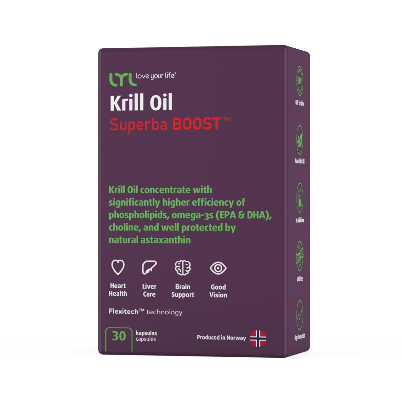 Superba Boost™ – kõrgeima kvaliteediga krilliõli on hästi imenduv, looduslik, puhas ning rikkaliku toitainesisaldusega, toetades südame, aju, silmade ja maksa tervist.