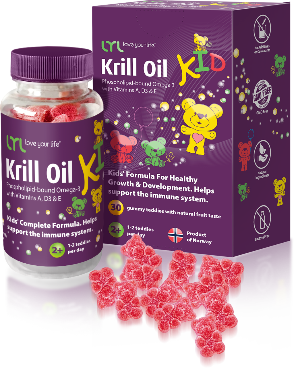 Экологически добытый Aнтарктический криль (Euphausia Superba) + витамины A, D3 и E.